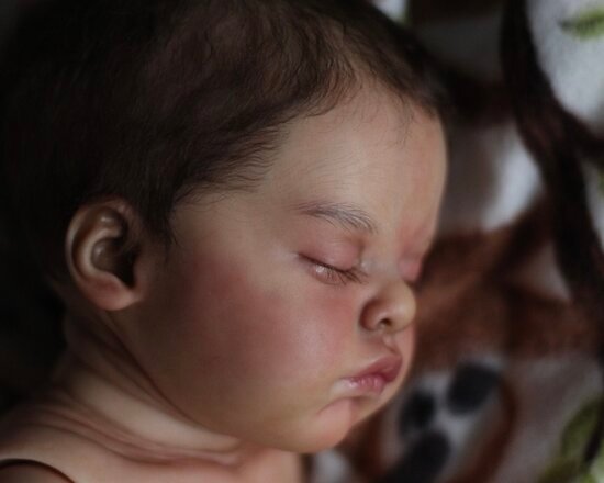 | Artist: Unknown Sculpture by: Natali Blick Kit Name: Coco Bought From: Kit from kit dealer Length: 18″ (45.7 cm)Certificate Of Authenticity (COA): Yes Head Material: Vinyl Category: Reborn Baby |