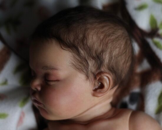 Baby coco fits perfect in preemie and small newborn clothing! She is a full vinyl, jointed reborn doll. I personally added some details to her face, including eyebrows, and added matte varnish. She was rooted by me. Anatomically correct female vinyl torso, I am not posting photos of her unclothed publicly, but do have photos if necessary. Comes with a small box opening. She is a long sold out, very sought after kit. Grab her while you can, just in time for the holidays!