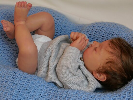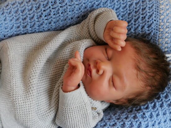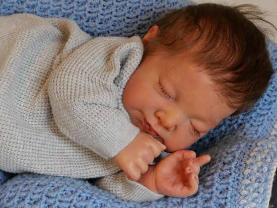 | Artist: Bruna Figueira Sculpture by: Adrie Stoete Kit Name: Neyla Kit Bought From: Seller didn’t answer Length: 18.8″ (48 cm) Weight: 5lbCertificate Of Authenticity (COA): Yes Head Material: Vinyl Category: Reborn Baby |
